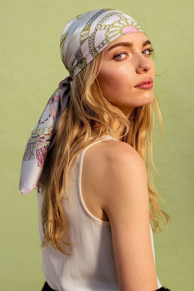 Unser Satinhaarband kann als Haarband aber auch als Halstuch getragen oder an deine Lieblingstasche gehängt werden. Glamour pur.