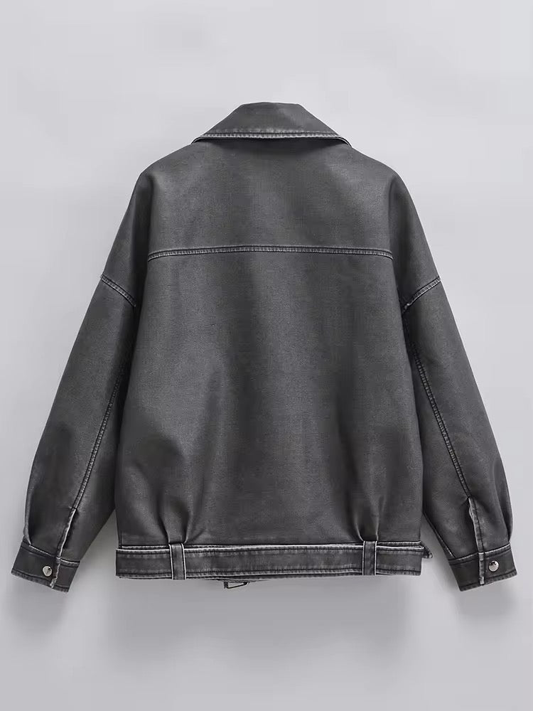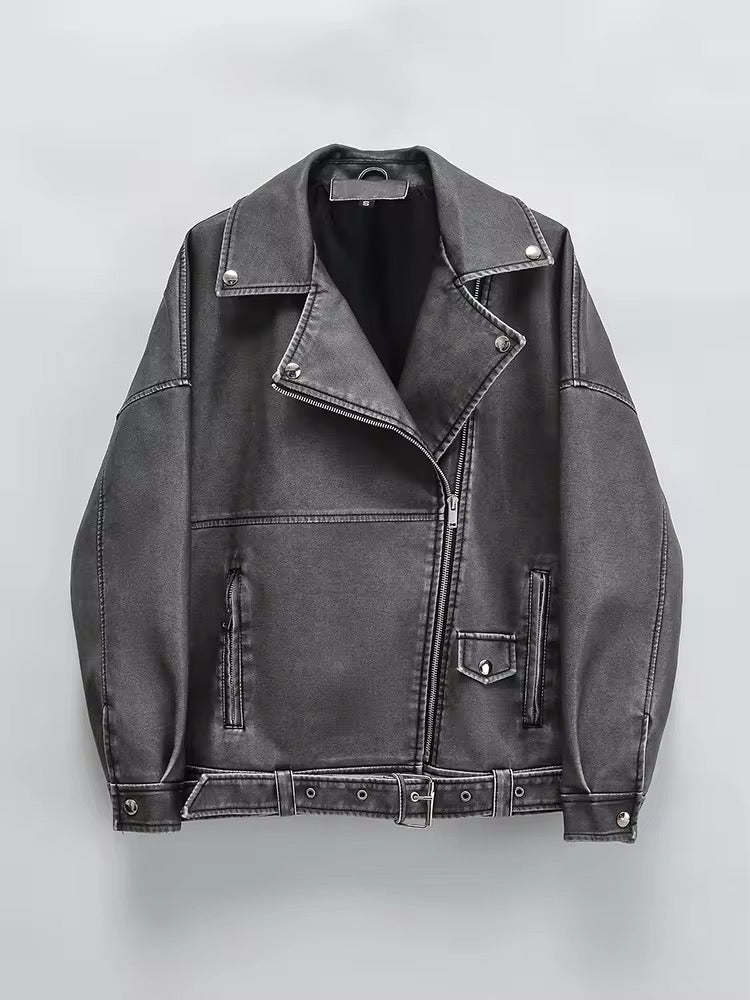 Entdecke unsere ROCKA ME Oversize Lederjacke aus Kunstleder im Bikerstil in Grau! Diese Jacke ist ein absolutes Trend-Piece und der perfekte Hingucker für jeden Anlass. Mit ihrem markanten Design und der hochwertigen Verarbeitung setzt du ein starkes Statement. Vielseitig kombinierbar und absolut im Trend sein mit unserer ROCKA ME Lederjacke - ergänze deine Garderobe mit diesem Must-Have.