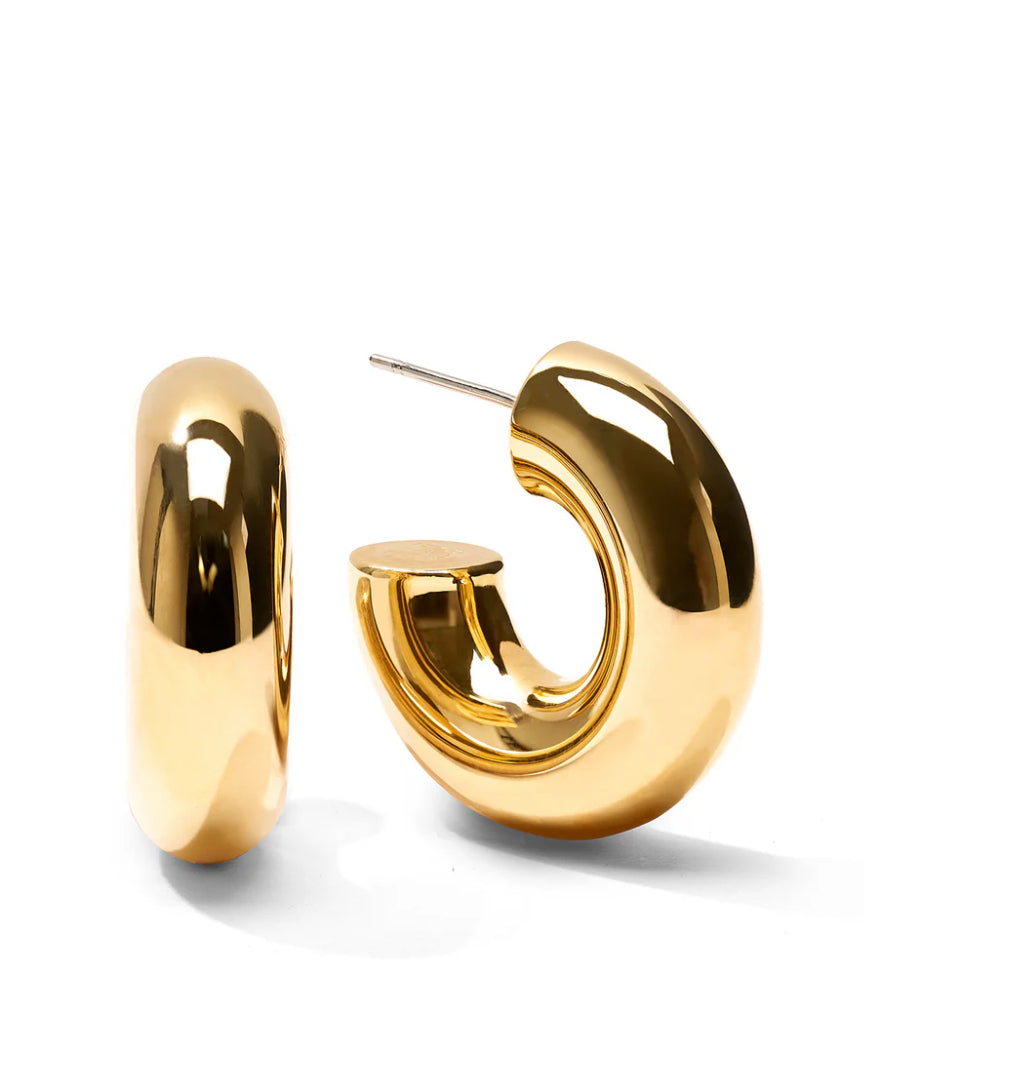 Strahle mit unseren exquisiten kleinen dicken Hoop Ohrringen aus Edelstahl und 18-karätigem Gold