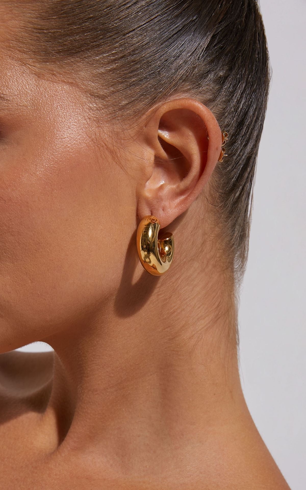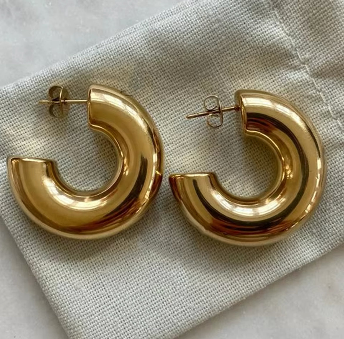 Tauche ein in die Welt des Luxus und der Eleganz mit unseren kleinen dicken Hoop Ohrringen aus hochwertigem Edelstahl, kunstvoll vergoldet mit 18 Karat Gold. Diese kunstvollen Ohrringe sind das perfekte Accessoire für die moderne Frau von heute, die nach zeitloser Schönheit und Stil strebt.