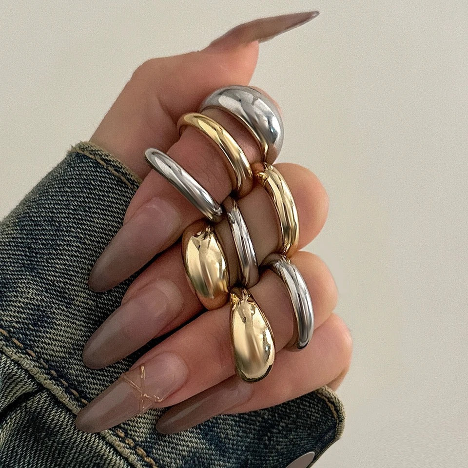 Du wirst dieses absolut trendige Ring-Set einfach lieben! Mit verschiedenen Größen und Breiten der Ringe kannst du ganz nach deinem Geschmack mixen und matchen. Dieses Set ist ein Must-Have für alle Fashionistas und verleiht deinen Outfits das gewisse Extra. Egal ob du sie einzeln oder zusammen trägst, diese Ringe setzen ein Fashion-Statement und geben deinem Look eine persönliche Note. Hol dir jetzt dieses trendige Ring-Set und sei bereit, deine Finger stilvoll zu schmücken!