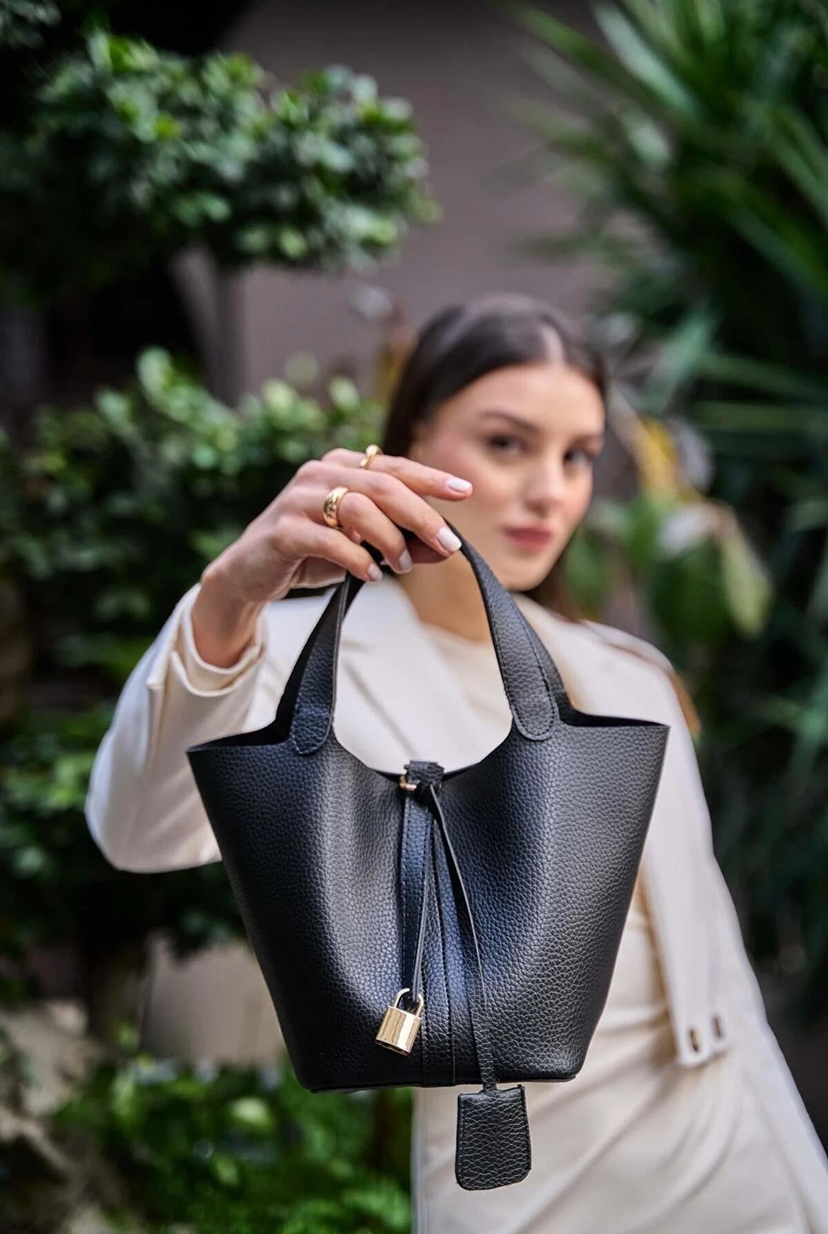 Hergestellt aus hochwertigem Kunstleder, besticht die Picotin-Dupe-Tasche mit ihrer exquisiten Handwerkskunst und detailreichen Verarbeitung. Das geräumige Hauptfach bietet ausreichend Platz für deine täglichen Essentials, während die zusätzliche Innentasche für eine organisierte Aufbewahrung sorgt.